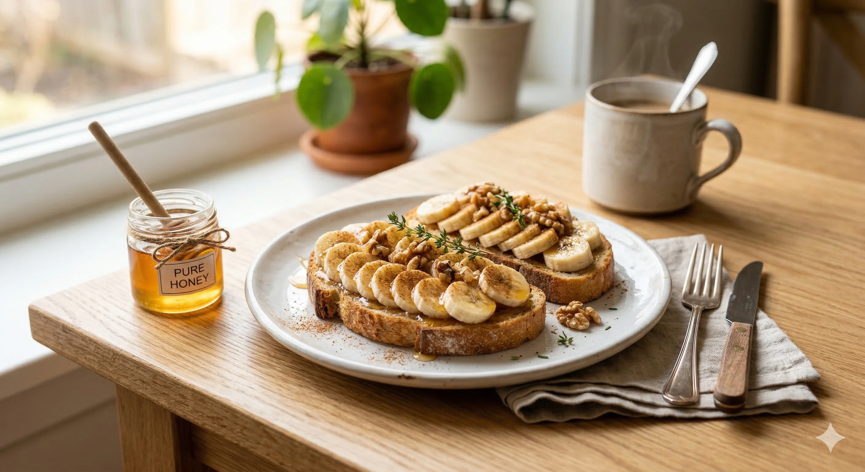 바나나 꿀 토스트 시니어 1인분 아침 — 칼륨 풍부한 바나나와 꿀로 5분 만에 완성한 혈압 관리 아침 간편식