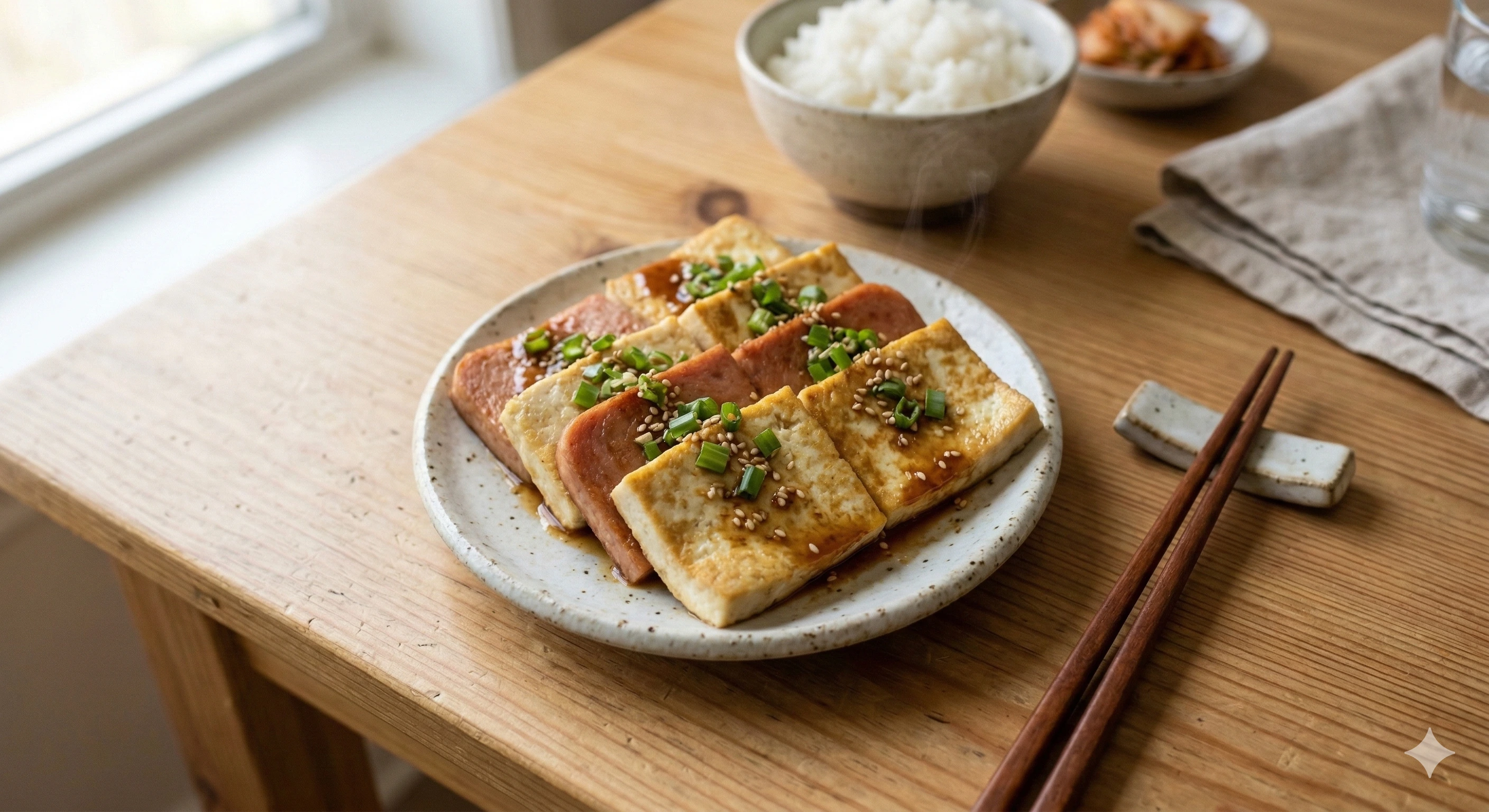 🍽 두부 한 모와 스팸 한 조각, 키친타월 물기 제거만 지키면 10분 컷 노릇한 단백질 반찬이 완성됩니다.